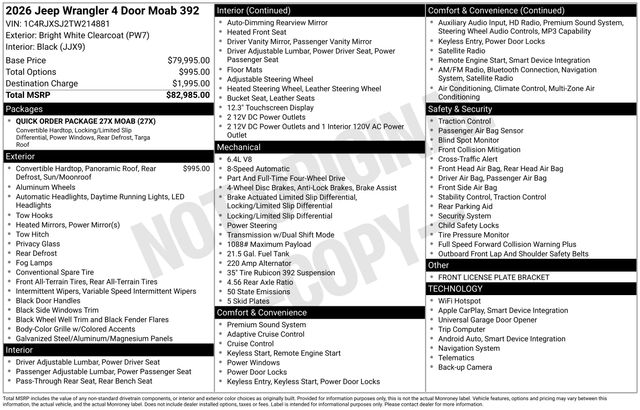 Discover the thrill of the open road and the unmatched capability of the 2026 Jeep Wrangler Moab 392. Contact us at 800-643-2112 to schedule a test drive and experience the difference for yourself.