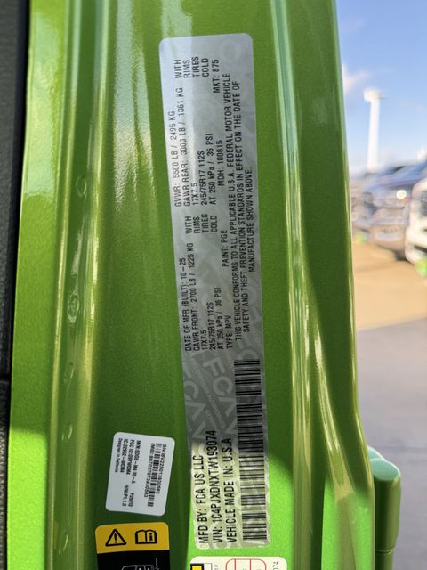 South Fork Chrysler Jeep Dodge Ram is pumped up to offer this good-looking and fun 2026 Jeep Wrangler in Mojito Clearcoat. This vehicle has passed our comprehensive inspection and comes with the following features: 2026 Wrangler Sport S 2-Door Passive Entry, Front Door Locks, Advanced Brake Assist, Air Filtering, Auto High Beam Headlamp Control, Automatic Headlamps, Cluster 7.0" TFT Color Display, Convenience Group, Corning Gorilla Glass, Deep Tint Sunscreen Windows, Emergency/Assistance Call, Enhanced Adaptive Cruise Control, Full Speed Forward Collision Warning Plus, Heated Front Seats, Heated Steering Wheel, Injection Molded Black Rear Bumper, LED Taillamps, ParkSense Rear Park Assist System, Power Heated Mirrors, Premium Wrapped Steering Wheel, Quick Order Package 22S Sport S, Remote Start System, Safety Group, Security Alarm, Universal Garage Door Opener, Wheels: 17" x 7.5" Gray.