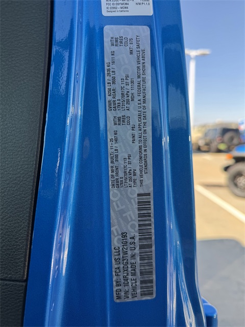 South Fork Chrysler Jeep Dodge Ram is very proud to offer this gorgeous-looking and fun 2026 Jeep Wrangler in Hydro Blue Pearl Coat. This vehicle has passed our comprehensive inspection and comes with the following features: 2026 Wrangler Willys 2-Door Passive Entry, Front Door Locks, 35" Tire Suspension, 4-Wheel Drive Swing Gate Decal, 4.56 Rear Axle Ratio, 7 and 4 Pin Wiring Harness, Advanced Brake Assist, Air Conditioning with Auto Temp Control, Air Filtering, Anti-Lock 4-Wheel Disc Perf Brakes, Automatic Headlamps, Auxiliary Switches, Black Grille, Class II Receiver Hitch, Cluster 7.0" TFT Color Display, Convenience Group, Conventional Differential Front Axle, Corning Gorilla Glass, Dana M210 Wide HD Tube Front Axle, Dana M220 Wide Rear Axle, Daytime Running Lamps LED Accents, Deep Tint Sunscreen Windows, E-Locker Rear Axle, Emergency/Assistance Call, Enhanced Adaptive Cruise Control, Front LED Fog Lamps, Full Speed Forward Collision Warning Plus, Heated Front Seats, Heated Steering Wheel, Injection Molded Black Rear Bumper, LED Premium Reflector Headlamps, Mold in Color Bumper with Gloss Black, Molded in Color Rubicon Highline Flare, MOPAR All-Weather Floor Mats, MOPAR Hinge-Gate Reinforcement, MOPAR Jack Spacer, MOPAR Tire Relocation Kit, Off-Road Plus Mode, Power Heated Mirrors, Premium Wrapped Steering Wheel, Quick Order Package 24W Willys, Security Alarm, Sun Visors with Illuminated Vanity Mirrors, Universal Garage Door Opener, Wheel Flare Extensions, Wheels: 17" x 7.5" Painted Black, Wheels: 17" x 8" Machined with Black Pockets, Willy's Suspension, Willys Hood Decal, Xtreme 35 Tire Package.