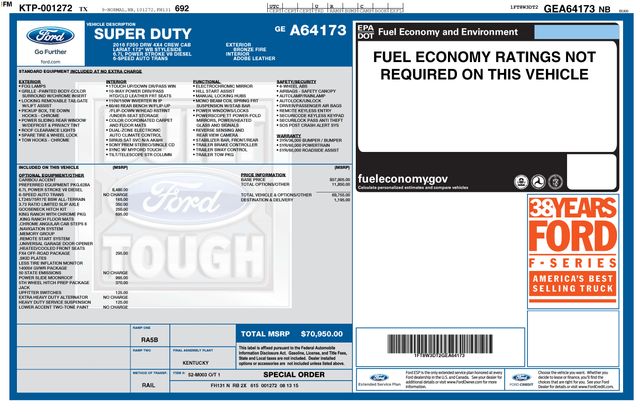 Discover the ultimate heavy-duty workhorse in this 2016 Ford F-350SD King Ranch DRW. Boasting a powerful Power Stroke 6.7L V8 DI 32V OHV Turbodiesel engine and a TorqShift 6-Speed Automatic transmission, this truck is ready to tackle any job with uncompromising capability.