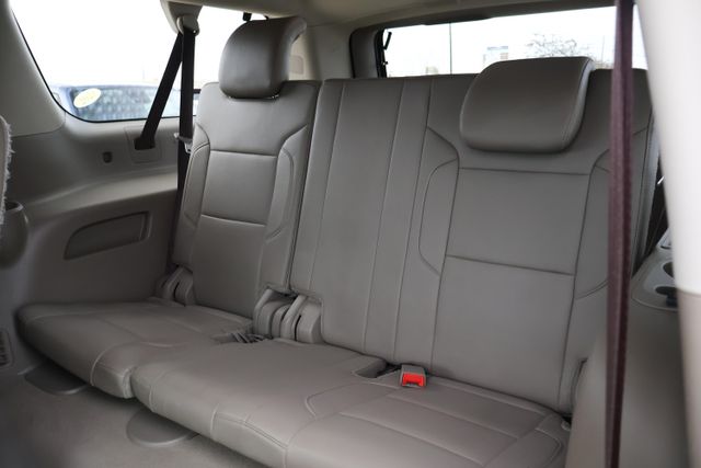 Step inside and you'll be greeted by a spacious and well-appointed cabin, with seating for up to 8 passengers. The second-row bucket seats and power-adjustable pedals ensure a comfortable and customized driving experience. The premium leather-appointed seats and memory package add an extra touch of luxury, while the rear-seat Blu-Ray/DVD entertainment system keeps your passengers entertained.