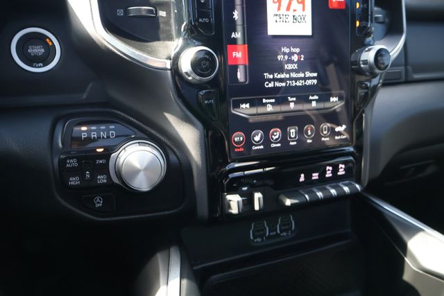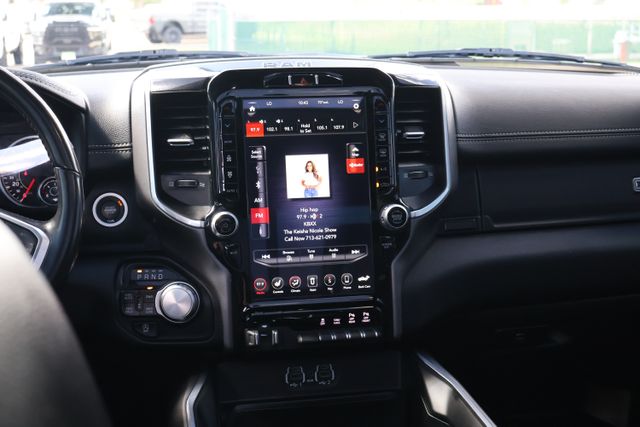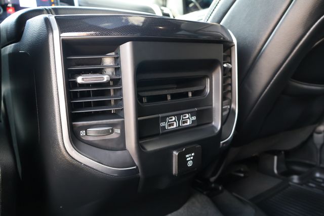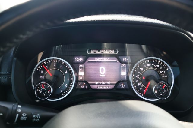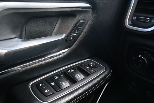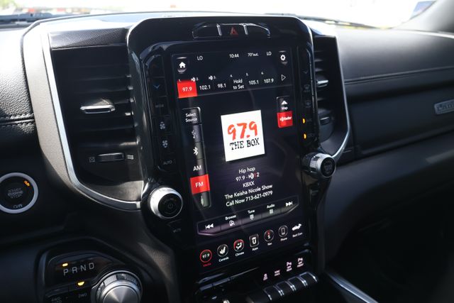 The interior of this Laramie is a sanctuary of refined luxury, with premium leather-trimmed seats, a dual-pane panoramic sunroof, and advanced technology at your fingertips. The Uconnect 12" touchscreen navigation system puts a world of connectivity and entertainment within reach, while the premium audio system surrounds you with crystal-clear sound.