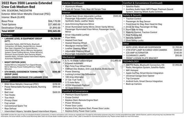 Don't miss your chance to own this exceptional 2022 Ram 3500 Laramie Night Mega Cab 4x4. Schedule a test drive today and experience the ultimate in truck performance and luxury. We're confident you'll be impressed by this remarkable vehicle and its unparalleled capabilities.