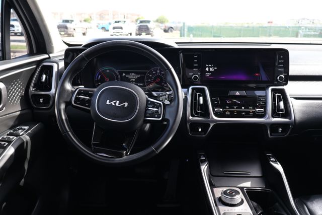 Stepping inside, you'll be greeted by a spacious and well-appointed cabin that caters to your every need. The Sorento Hybrid EX offers a host of premium features, including a Navigation System, Heated Front Bucket Seats, and a Panoramic Sunroof, ensuring a comfortable and connected driving experience.