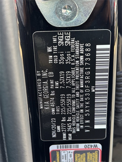 - VIN : 5XYK53DF3RG173688