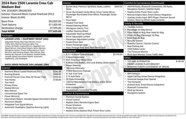 Boasting a Cummins 6.7L I6 Turbodiesel engine mated to a 6-speed automatic transmission, this Ram 2500 Laramie delivers exceptional performance and efficiency. The available 4-wheel drive system provides the traction and control you need to conquer any terrain, whether you're hauling heavy loads or exploring the great outdoors.