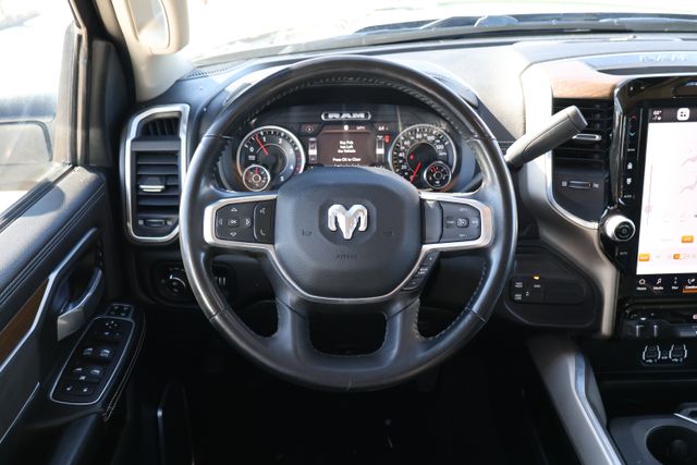 Step inside the luxurious cabin and experience the premium features that set the Laramie apart. Sink into the plush leather-trimmed bucket seats, enjoy the convenience of dual-zone automatic climate control, and stay connected with the advanced Uconnect 5 infotainment system and its stunning 12-inch touchscreen display. The Laramie also offers a host of advanced safety technologies, including Blind Spot and Cross-Path Detection, to give you added peace of mind on the road.